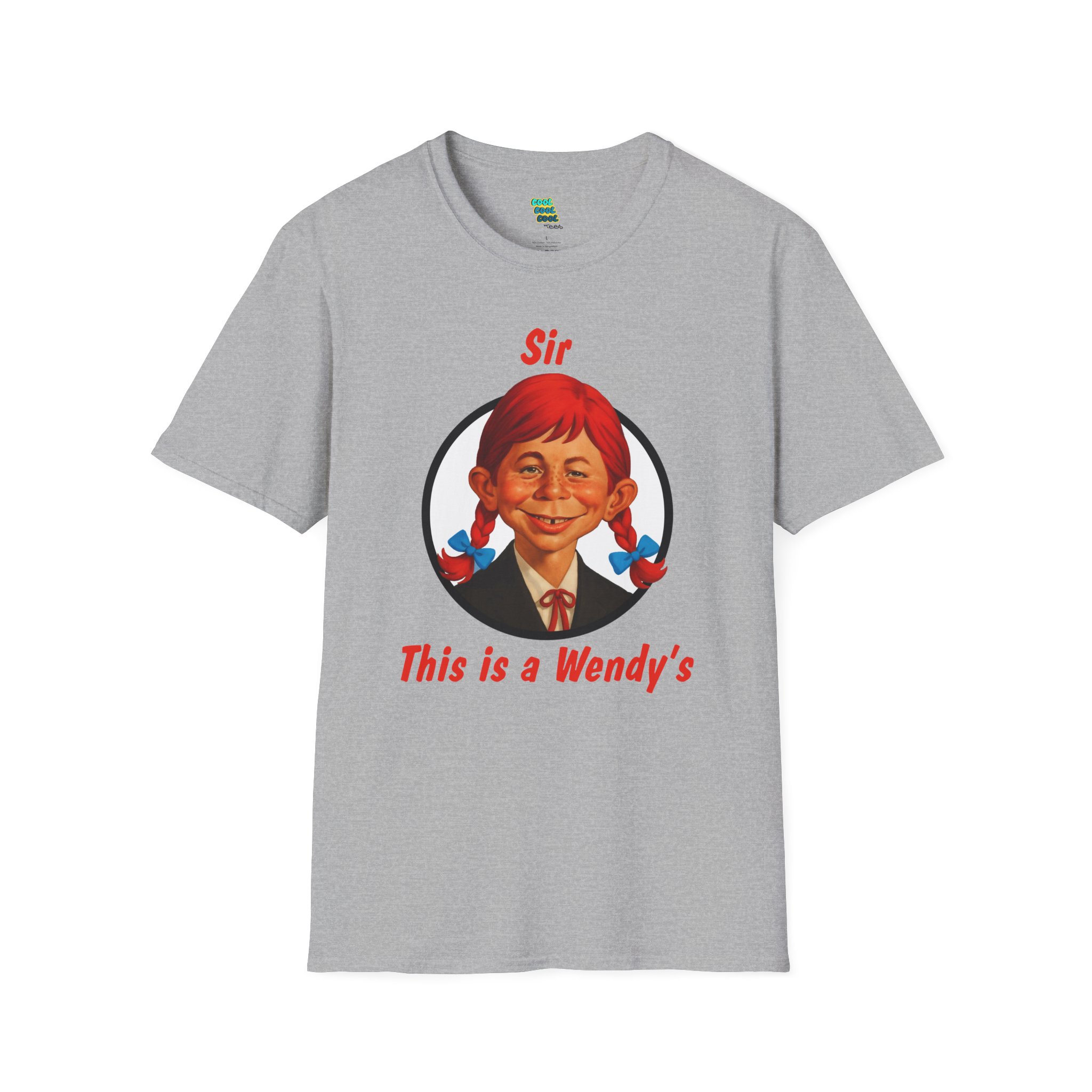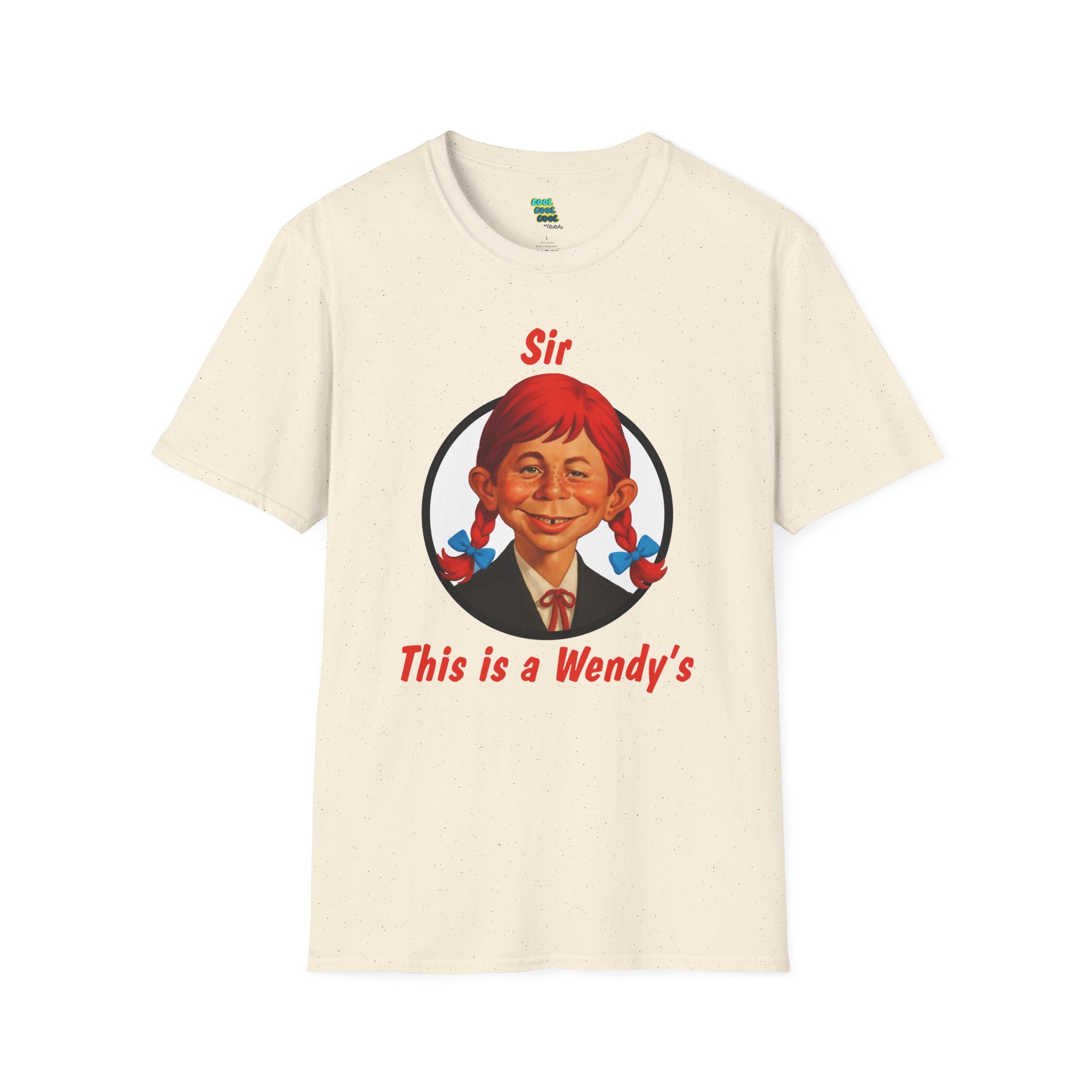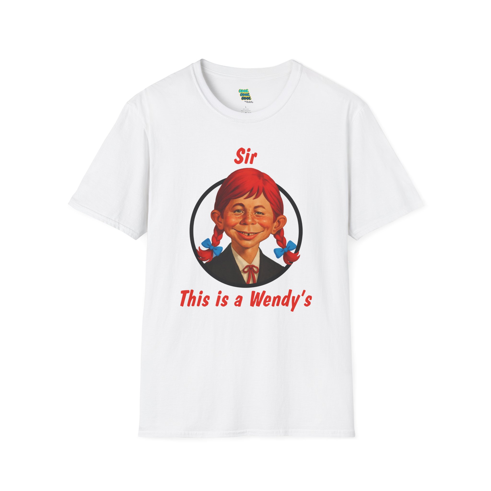Bring peak chaotic energy to your wardrobe with this hilarious parody tee! Featuring a mash-up illustration of a certain iconic freckle-faced mascot sporting bright red braided pigtails and an unmistakably mischievous grin, this shirt takes the classic meme phrase “Sir, this is a Wendy’s” and turns it into wearable comedy gold.